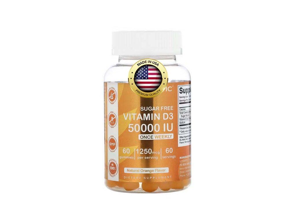 🧪 Obsah účinné látky: 50 000 IU vitaminu D3 na gumák